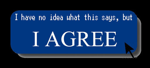 Η ενημέρωση και συναίνεση αποτελεί μια παράλογη νομική μυθοπλασία. Ο Jonathan Α. Obar και η Anne Oeldorf-Hirsch, ένα ζευγάρι καθηγητών Επικοινωνιολογίας από το York University και το University of Connecticut, δημοσίευσαν ένα έγγραφο εργασίας το 2016 που ονομάζεται “Το μεγαλύτερο ψέμα στο Διαδίκτυο: Αγνοώντας τις Πολιτικές Απορρήτου και την Πολιτική Χρήσης Υπηρεσιών των κοινωνικών δικτύων”. Το έγγραφο περιγράφει αναλυτικά το πώς οι καθηγητές έδωσαν την ευκαιρία στους φοιτητές τους, οι οποίοι μελετούν το αντικείμενο των συμφωνητικών αδειών χρήσης και την ιδιωτικότητα, να δοκιμάσουν ένα νέο κοινωνικό δίκτυο (η συγκεκριμένη υπηρεσία ήταν φανταστική, αλλά οι μαθητές δεν το γνώριζαν). Για να δοκιμάσουν το δίκτυο, οι φοιτητές έπρεπε να δημιουργήσουν λογαριασμούς, και τους δόθηκε η ευκαιρία να εξετάσουν τους όρους χρήσης της υπηρεσίας και την πολιτική ιδιωτικότητας, η οποία έγραφε ξεκάθαρα πως θα δώσει όλα τα προσωπικά δεδομένα των χρηστών στην NSA και απαιτούσε το πρωτότοκο παιδί των φοιτητών ως αντάλλαγμα για την πρόσβαση στην υπηρεσία. Όπως θα έχετε καταλάβει ήδη από τον τίτλο της μελέτης, κανένας από τους φοιτητές δεν παρατήρησε κανένα από τα δύο σημεία και σχεδόν κανένας από αυτούς δεν κοίταξε τους όρους παροχής υπηρεσιών για περισσότερο από μερικά δευτερόλεπτα.