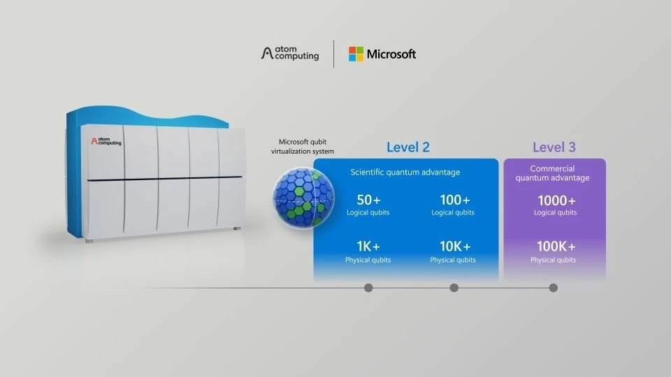 Σε μια ανάρτηση στο επίσημο blog της Microsoft, η εταιρεία αναφέρει ότι συνεργάζεται με την Atom Computing για την κατασκευή της μηχανής. Θα συνδυάζει το βελτιωμένο σύστημα qubit-virtualization της Microsoft με το υλικό ουδέτερου ατόμου της Atom Computing. Η Microsoft αναφέρει ότι έχει ήδη κατασκευάσει λογικά qubits με αυτή τη συνεργασία και οι δύο εταιρείες εργάζονται έτσι ώστε η κβαντική μηχανή να μπορεί να προσφέρει αξιόπιστες λειτουργίες και αποτελέσματα κβαντικού υπολογισμού.