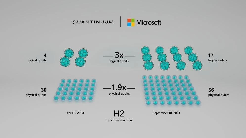 Τον περασμένο Απρίλιο, η Microsoft ανακοίνωσε ένα ορόσημο για τους κβαντικούς υπολογιστές με έναν άλλο συνεργάτη στον τομέα του hardware, την Quantinuum. Κατάφεραν να δημιουργήσουν αξιόπιστα λογικά qubits που είχαν ποσοστό σφάλματος 800 φορές καλύτερο από τη χρήση φυσικών qubits. Σήμερα, η Microsoft ανακοίνωσε ότι συνεργάστηκε και πάλι με την Quantinuum για την κατασκευή 12 εξαιρετικά αξιόπιστων λογικών qubits. Η Microsoft αναφέρει ότι πρόκειται για τον «μεγαλύτερο αριθμό περιπλεγμένων λογικών qubits, με την υψηλότερη πιστότητα, που έχει καταγραφεί ποτέ».